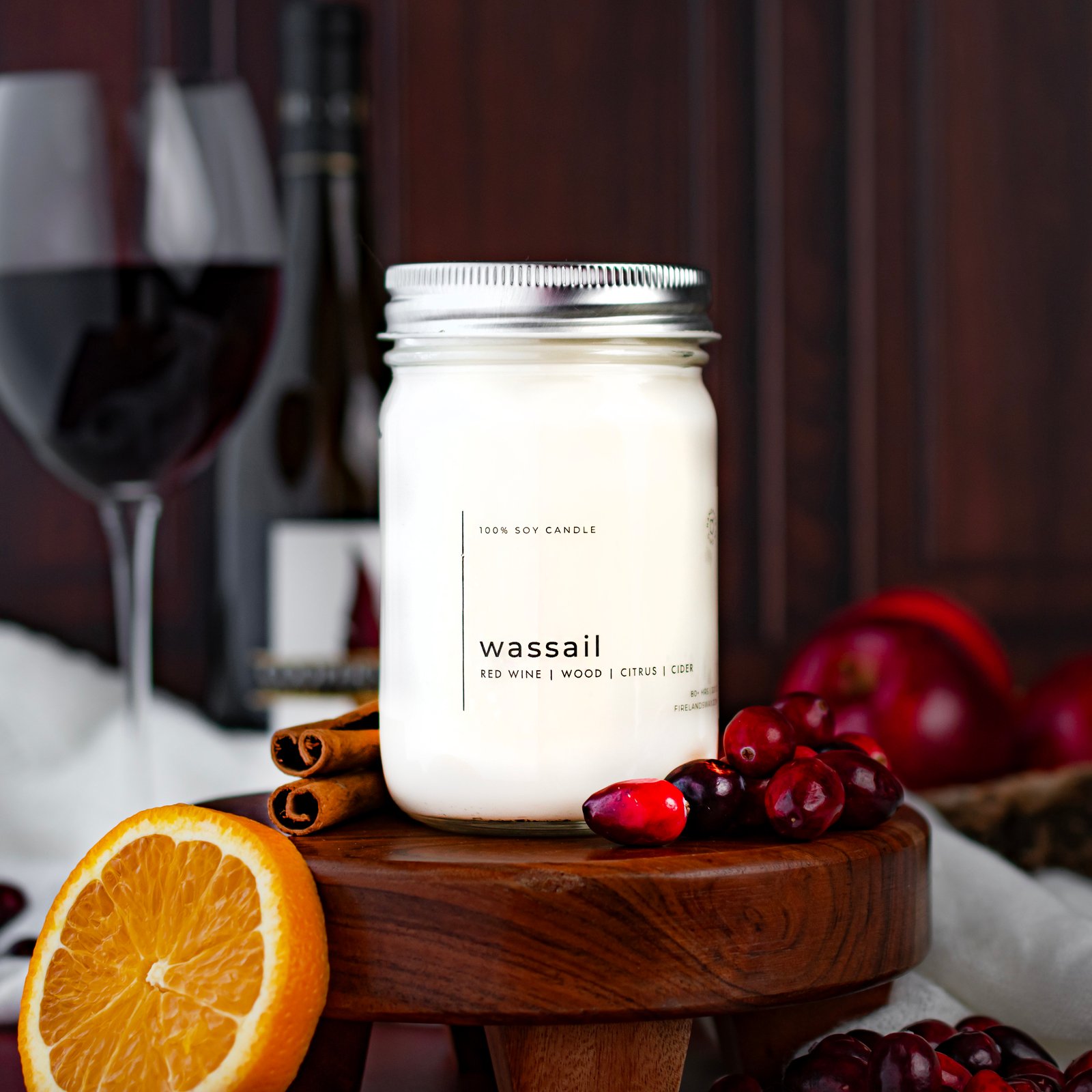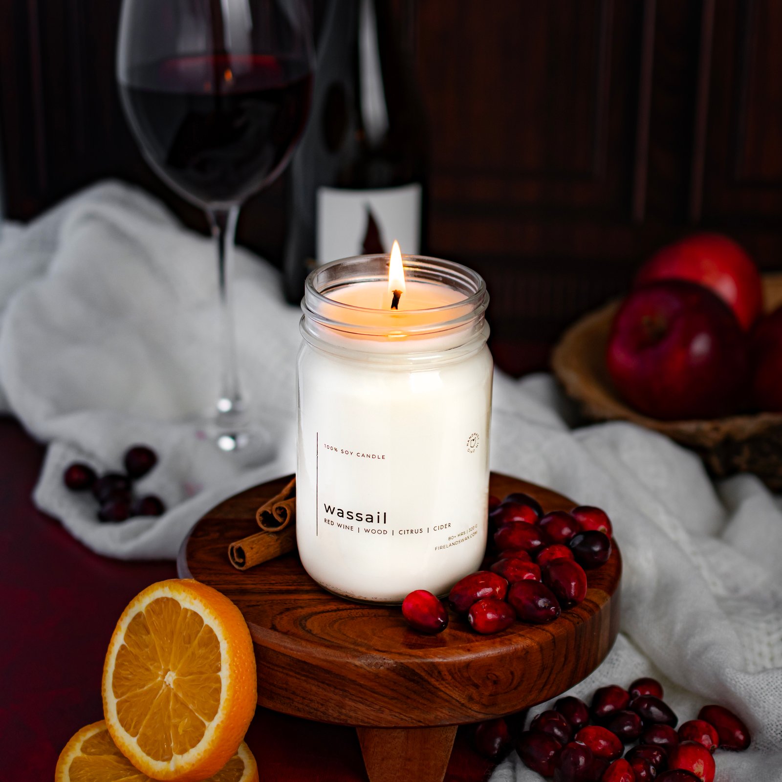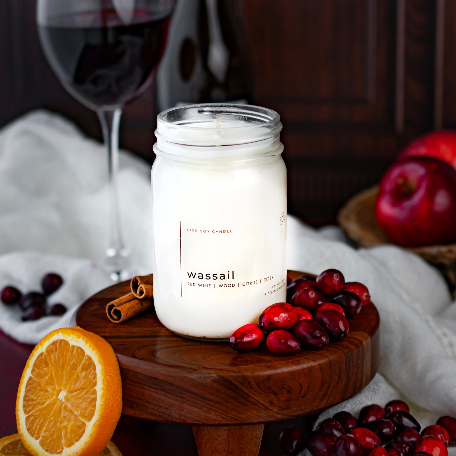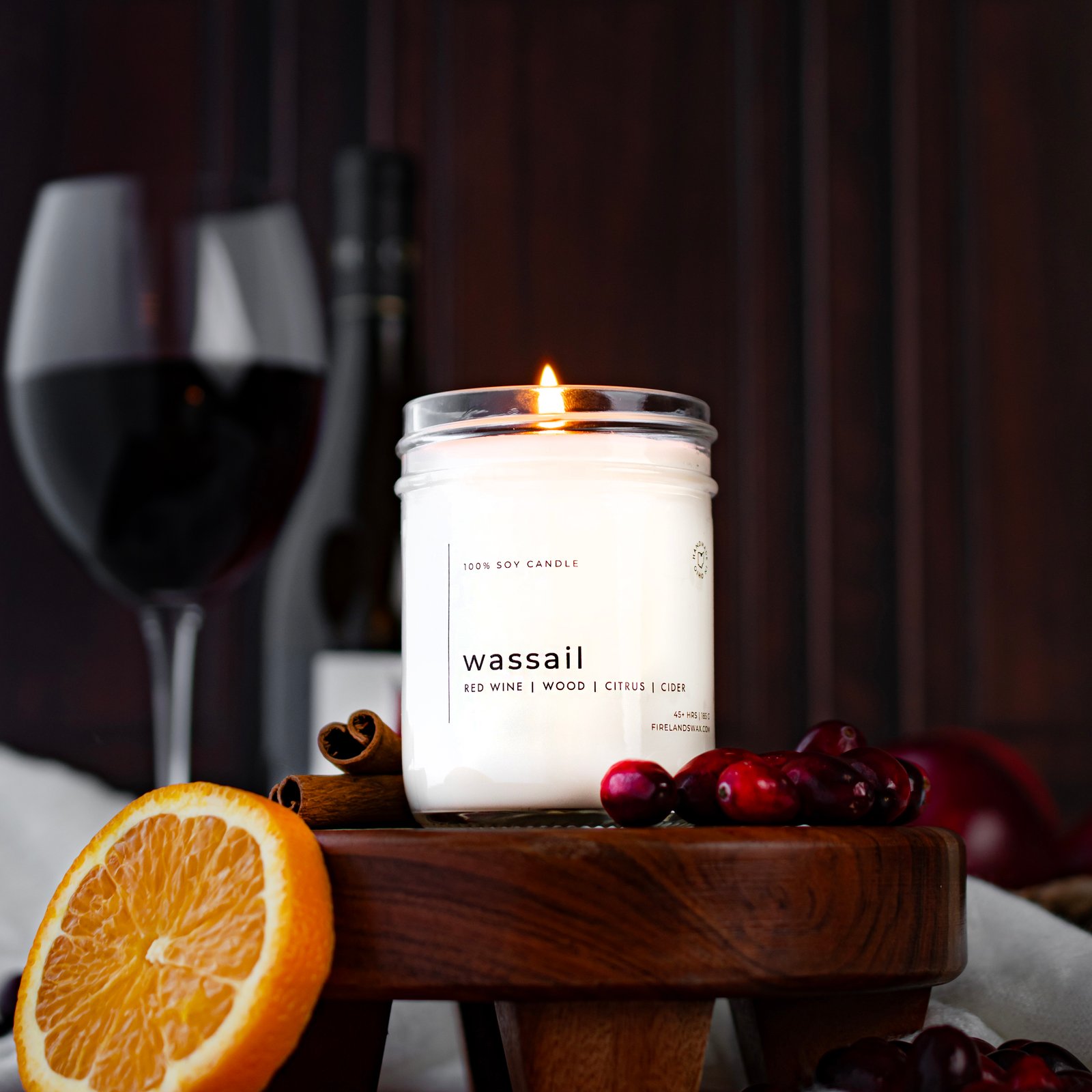 Fruit forward and fun, Wassail starts with top notes of red wine and fresh apple, followed by middle notes of orange, lemon, cinnamon, and cranberry, before mellowing out into a base of wood reminiscent of an oak wine cask. Bright, sophisticated, and 100% seasonal, Wassail creates a timeless, festive environment equally perfect for entertaining as it is a walk down memory lane.